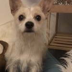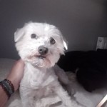 Mały, biały, prawdopodobnie przerażony, zerwał się ze smyczy, boi się obcych ludzi ale jest towarzyski względem dzieci, ma na imię ADI