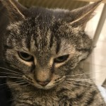 graue Europäisch-Kurzhaar-Katze "HADES". Die Katze ist extrem scheu. HADES ist kastriert und gechipt (616093900266234). Die Katze hat leider keine Zähne deshalb braucht besondere Pflege.