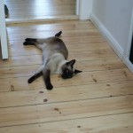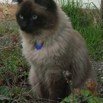 A 7 years old female thai/siamese cat. Color Body beige. ears, tail and paws black. Lost furr on the right side of her body under arm. Doesn't like to be taken on the hands, very independent but seeking contact with humans. Small in size and talkative.