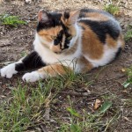 Tricolor Katze. Buntes Gesicht. Eher kleine Statur