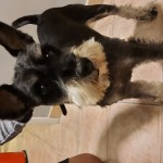 Klein, helle Schnauze, geschorenes Fell. Große, spitze Ohren. Fährt scheinbar gern Auto. Menschenfreundlicj