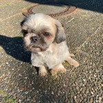 Biały, plecy bezowe, głowa trochę ciemńiejsza, uszy ciemnobrązowe / czarne. Samiec niekastrowany. Pies nie żyje, został już nieżywy znaleziony. Prosimy o podanie danych rejestrowanego właściciela albo organizacji która psa zarejestrowała.