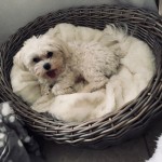 Jasne umaszczenie, średniej wielkości sunia. Bardzo strachliwa.