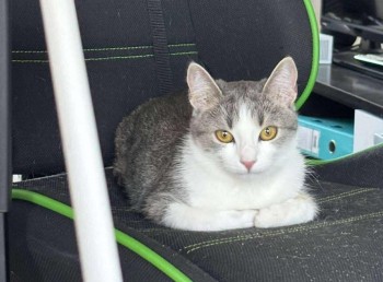 Kotka rasy mieszanej, ubarwienie biało-szare, samiczka nie kastrowana bez znaków szczególnych