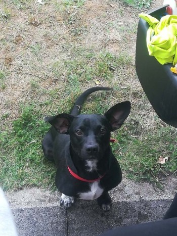 czarny, krótka sierść z krawatem białym, średniej budowy,nie wysoki, nieufny do ludzi