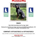 Black and Tan medium size dog. He’s name is Mack and gone missing. He has been shot in the leg by the local farmer but not seen anywhere since he ran away after.