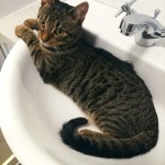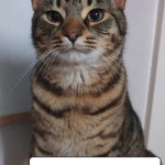 Kitten only 6months, tabby with black and brown colours. He has shaved square on his paw due to castration. Very lovely and playful kitten.