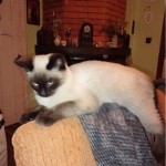 Lusia is a 2 years old pussy cat Very friendly love being next to the human. She is greyis! White with black/ brown spots She have white “socks” on her paws except the left paw as is only half white She is white under her chin Green eyes.