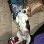 biała w ciemne łatki, jedna łatka na grzbiecie przypomina serduszko.