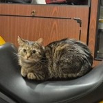 Kotka, 3 lata, drobna, szarobura z ciemnym pasem na grzbiecie. Zaczipowana.