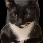 Czarny kot z delikatnym ledwo widocznym białym krawacikiem pod szyją
