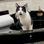 Biało czarny kot , dugi i wysoki o błyszczącej sierści z charakterystyczna czarna plamka na brodzie . Ma na imię Charlie i jest bardzo przyjazny .