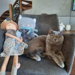 Niebieskie, szare futro. Pomarańczowe oczy, dość duża. Reaguje na imię.