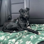 mix średni czarny + biała łapka krótkowłosy uszy klapnięte samiec około 1 roku
