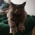 Ponad 3 letni kocur rasy Maine coon w kolorze blue solid niebieski. Wielka głowa i wielkie łapy, waga ok 5kg