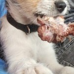 suczka xs mieszaniec Chihuahua /pinczer, umaszczenie biało rude, na grzbiecie rude podbrzusze białe, kufa biała głowa ruda, stojące uszy. ogon noszony nad grzbietem łagodnie zakręcony.