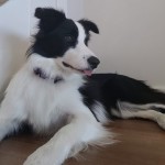 Półtoraroczna suczka Border Collie. Umaszczenie biało czarne - klasyczne. Miała fioletową obrożę. Obojętna na inne psy. Przyjazna i ufna wobec ludzi.