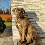 Kaszmir Cane Corso Błękitna pręgowana. Znak szczególny narośl na przedniej lewej łapie. Przyjazna dla ludzi i dzieci ale nie koniecznie dla innych psów.