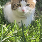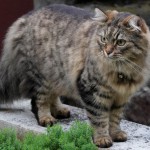 drobna mloda kotka, dlugi, delikatyny wlos. Typ norweski lesny. 3 kolorowa, przewaga koloru bialego i ciemnego brazu, nie ma zadnych charakterystycznych plamek. dlugi puszysty ogon. Dafne karmila nie dawno kocieta wiec moze miec powiekszone sutki, niewysterylizowana. dlugie wlosy wystaja z uszu