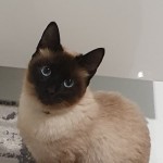 Kot rasy tajsko syjamskiej beżowo-czarny, niebieskie oczy