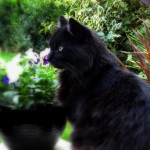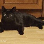 Duży czarny kocur,pod nosem mała plamka przypominająca pieprzyk,zwisający brzuszek