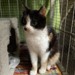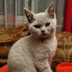 Płochliwa, niewielkich rozmiarów kotka, niebieskie oczy, gruby brzuszek. Cała biała, bez domieszek. Pchlowe atopowe zapalenie skóry zaleczone.
