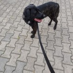 Zubi samiec, kastrowany, wiek około 1,5 roku. Miał na sobie niebieskie szelki i smycz flexi. Wyrwał się ze smyczy, samochód go lekko uderzył i uciekł