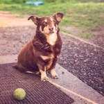 Mała, sterylizowana sunia, kolor rudy z jaśniejszymi plamkami nad oczami. Krótkie nóżki, tzw niskopodwoziowa. Ma obecnie około 13 lat. Lękliwa