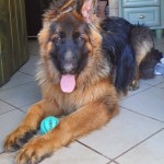Czarno-brązowe umaszczenie, jasna sierść na szyji. Ma czarną obrożę z adresówką, a na niej imię i nr telefonu. Na tylnych łapkach ma wilcze pazurki. Uciekł razem z czarną smyczą. Jest przyjazny, ale bardzo płochliwy.