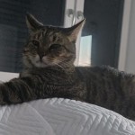 Szarobury samiec wie około 5 lat posiada obroże z numerem tel i imieniem,, Łosiu,, kastrat.