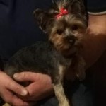 Krótko przystrzyżona, kolor włosa czarno-złoty. W dniu zaginięcia kiteczka na głowie. Obroża przeciwpchelna szara na karku z odblaskami z przezroczystego plastiku. Piesek przyjacielski. Wabi się Pusia.