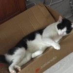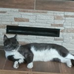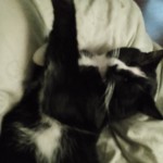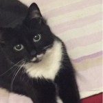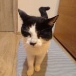 biało czarny kot, z charakterystyczna jedna czarą poduszeczką na tylnej łapie. Jest bardzo ufny i przyjazny do ludzi.
