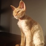 Duże uszy, zielone oczy, na grzbiecie karbowana sierść, szczupła szyja, na głowie łysinka :) miły w dotyku