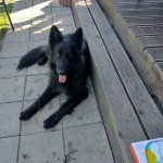 Owczarek niemiecki długowłosy, maści czarnej. Bardzo łagodna
