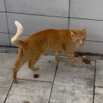 Rudy; bardzo długi kot; boi się innych ludzi, biała końcówka ogona; mała, czarna kropka na środku noska; brak futra przy pazurze na lewej tylnej łapce.