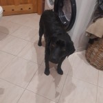 Lekko skrzywiony chód ze względu na operację. Umaszczenie blue z białymi skarpetkami, torsem oraz brzuchem. Pies reaguje na swoje imię. Blizny pooperacyjne na prawym łokciu oraz na prawej tylnej łapie.