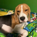 rasa Beagle , reaguje na imię Tofik, ubarwienie trzykolorowe biało czarno brązowe