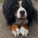 Pako to duży piesek, umaszczenie triocolor, może być płochliwy wobec innych ludzi