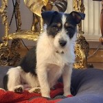 rasa Cavalier, wabi się Leo, ma charakterystyczną łezkę na glowie. ma mikrochip, jest przyjazny , miał na sobie rozowe szelki.