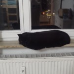 raczej nie zbliża sie do obcych ludzi, jest grubaśny, ma biały krawacik, kilka źdzbeł białej sierści