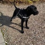 pies rasy Cane Corso czarny z białym krawatem z białą plamka na czole po lewej stronie