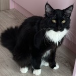 Kot europejski czarna z białymi znaczeniami. Każda skarpetka jest innej długości. Na czole ma małą, białą plamkę.Reaguje na imię Moon, Munczi.