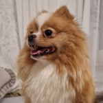 Szpic niemiecki ,młoda ,płochliwa koloru rudego z białym krawatem i białym paskiem na głowie, jest po ciąży wiec straciła dużo podszerstka. Ma na imię Lajla