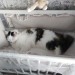 kot rasy devon rex, sierść czarna, krótka. W połowie łysy, krótkie kręcone wąsy. bardzo przyjazny, ufny.