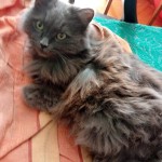 A female grey cat with long fluffy hair