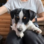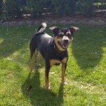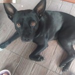 Pies o imieniu Kleks, czarny podpalany. Wielkość - nieco ponad kolano.