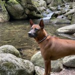 Ruda suczka, czarna morda. Cecha charakterystyczna - na grzbiecie włosy rosną w przeciwna stronę. Ma mała narośl na kufie.