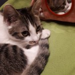 Kociczka bardzo nieufna, posiada białą łatkę na brzuszku.