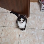 Duży kot, rasy brytyjskiej. Waga około 6 kg, sierść krótka, wpadającą w granat. Kotek bojący się nowych osób, płochliwy. Oczy żółte.
