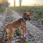 1,5 roczny pies, maści jasno brązowej, wzrostu ok. 60-70 cm w kłębie